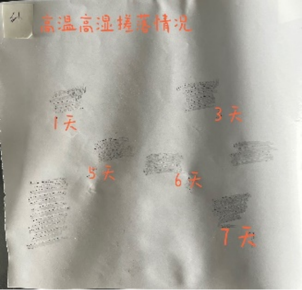 (O tempo de cura é definido como a duração mínima de cura sem qualquer mancha, fricção ou migração da camada de revestimento removível.)
